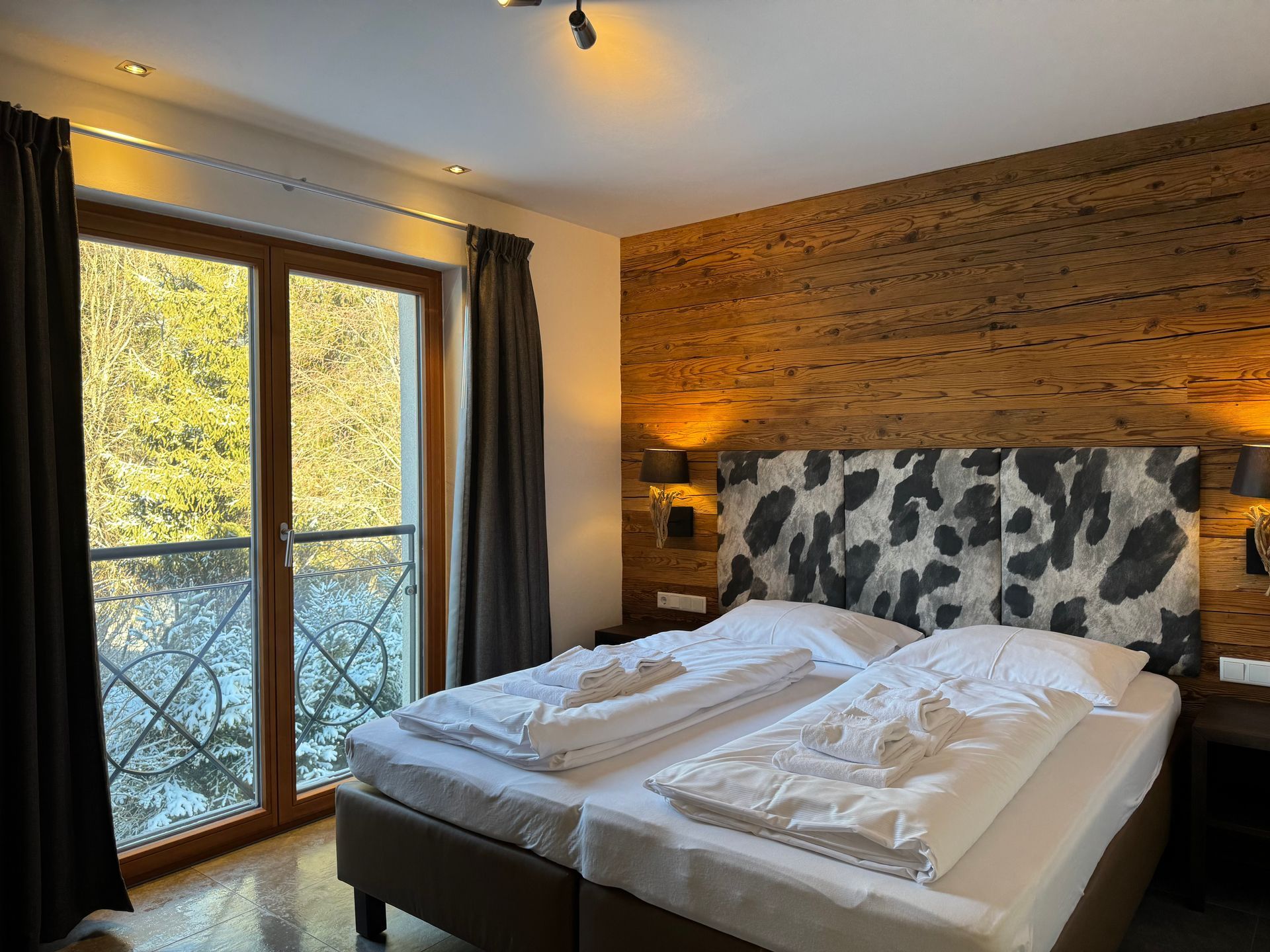 Obwohl nur 100 Meter von der Piste entfernt, liegt die Mountain Lodge Leogang in einer sehr ruhigen Lage, wo sich Sonnenstunden besonders entspannt genießen lassen. Eines der exquisitesten Restaurants im Salzburger Land befindet sich am selben Sonnenhang wie die Lodge, ebenso nur einen Steinwurf entfernt lässt es sich in einer der urigsten Skihütten in den Alpen feiern – Party, Pizza, Alm-Feeling!